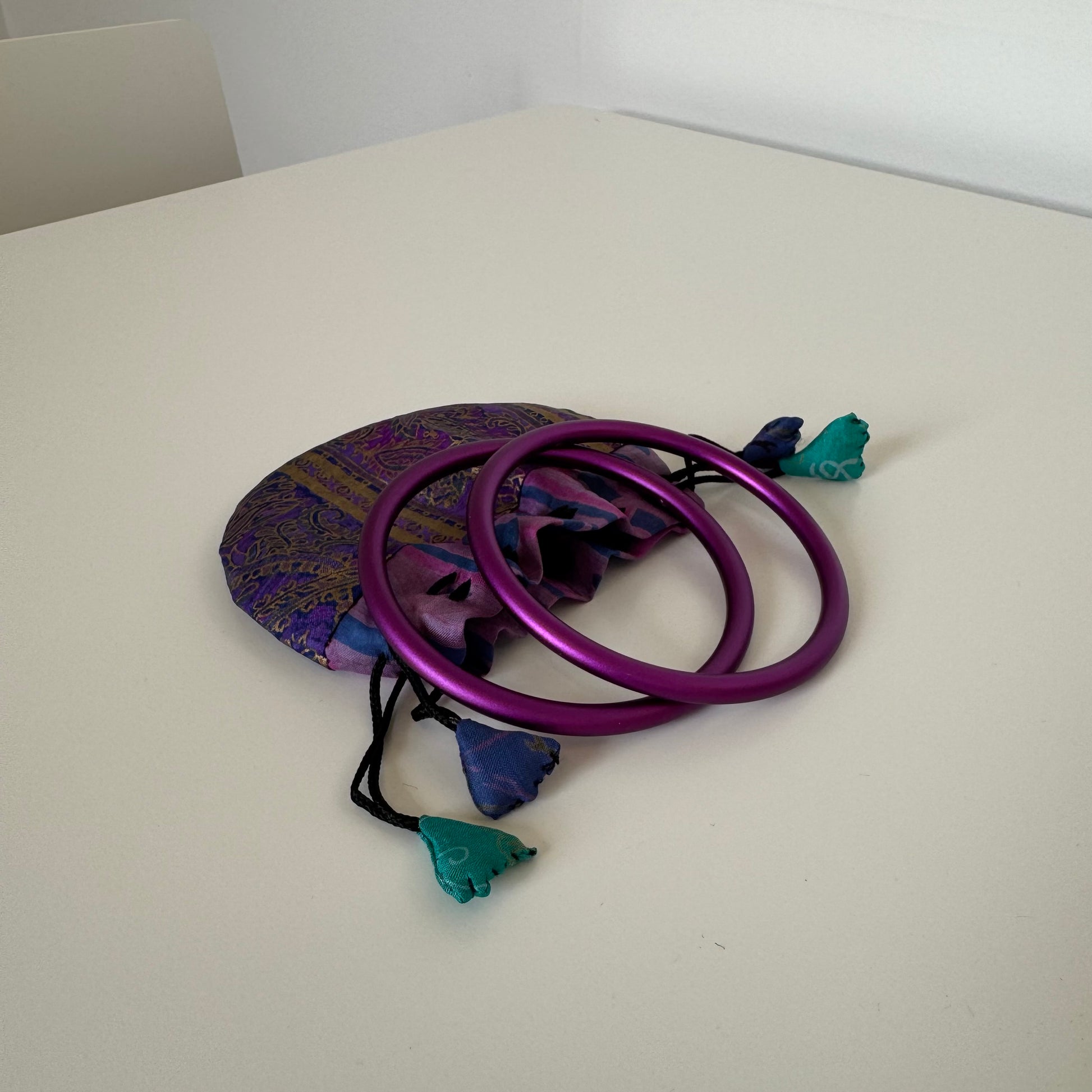 Each pair of rings comes inside an eco-friendly pouch, handmade in Nepal from recycled sari fabric, and is a Fair Trade product.